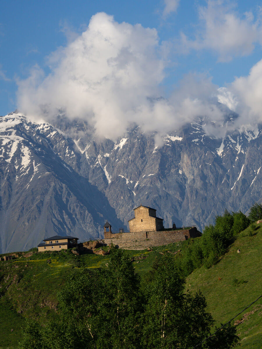 An unserem 4. Tag machten wir uns früh morgens auf den Weg von Stepanzminda zur berühmten Gergeti Kirche, die wunderschön vor dem Berg Kazbegi zu sehen ist.