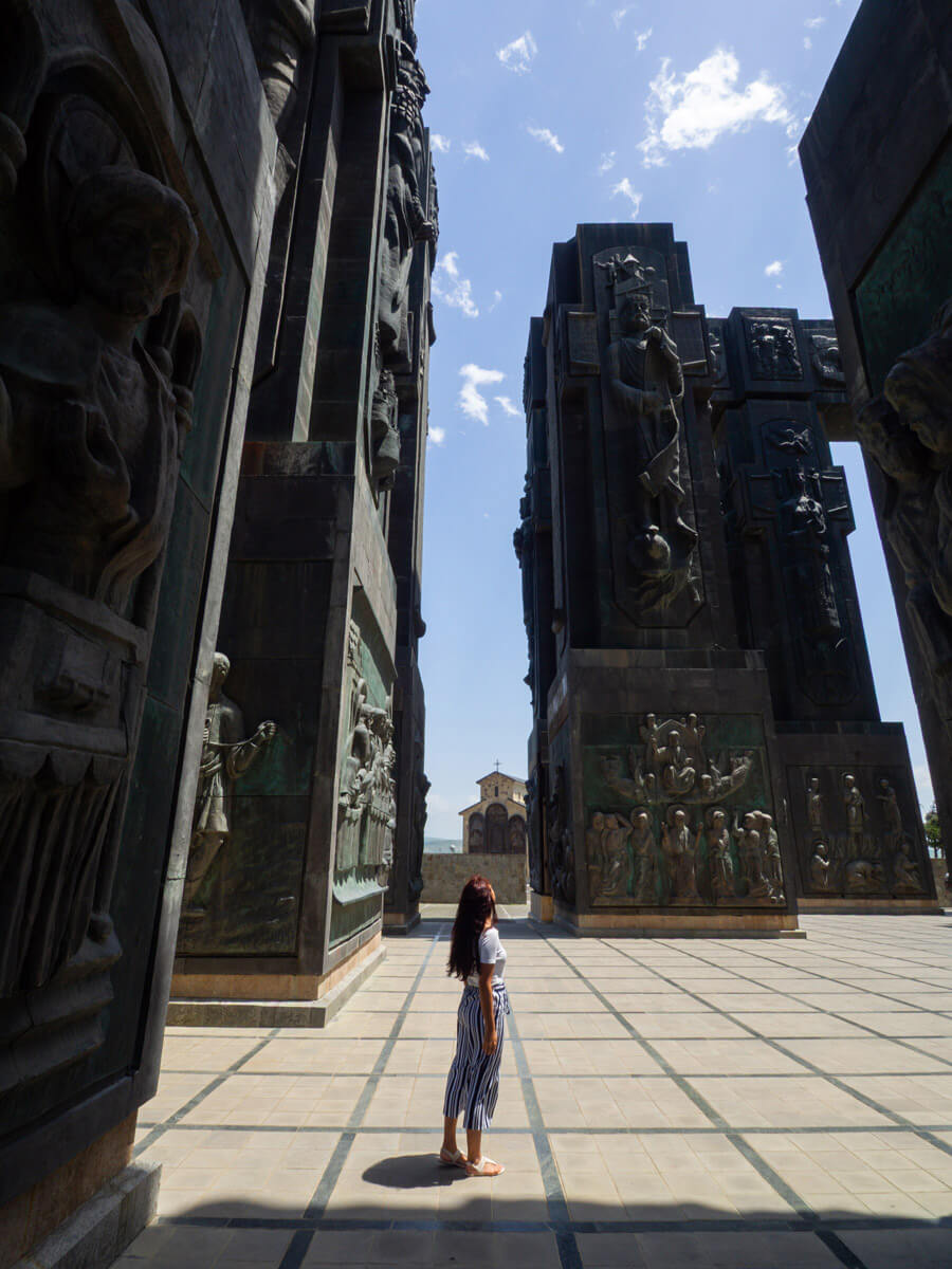 Am 3. Tag holten wir uns in der Innenstadt unser Mietauto, das wir die folgenden 4 Tage hatten. Der erste Stopp sollten die Berge an der russischen Grenze werden – denn dort befindet sich das typische Postkartenmotiv von Georgien, eine Kirche vor dem Gebirge. Auf dem Weg legten wir aber einige Stopps ein, die ich sehr empfehlen kann.