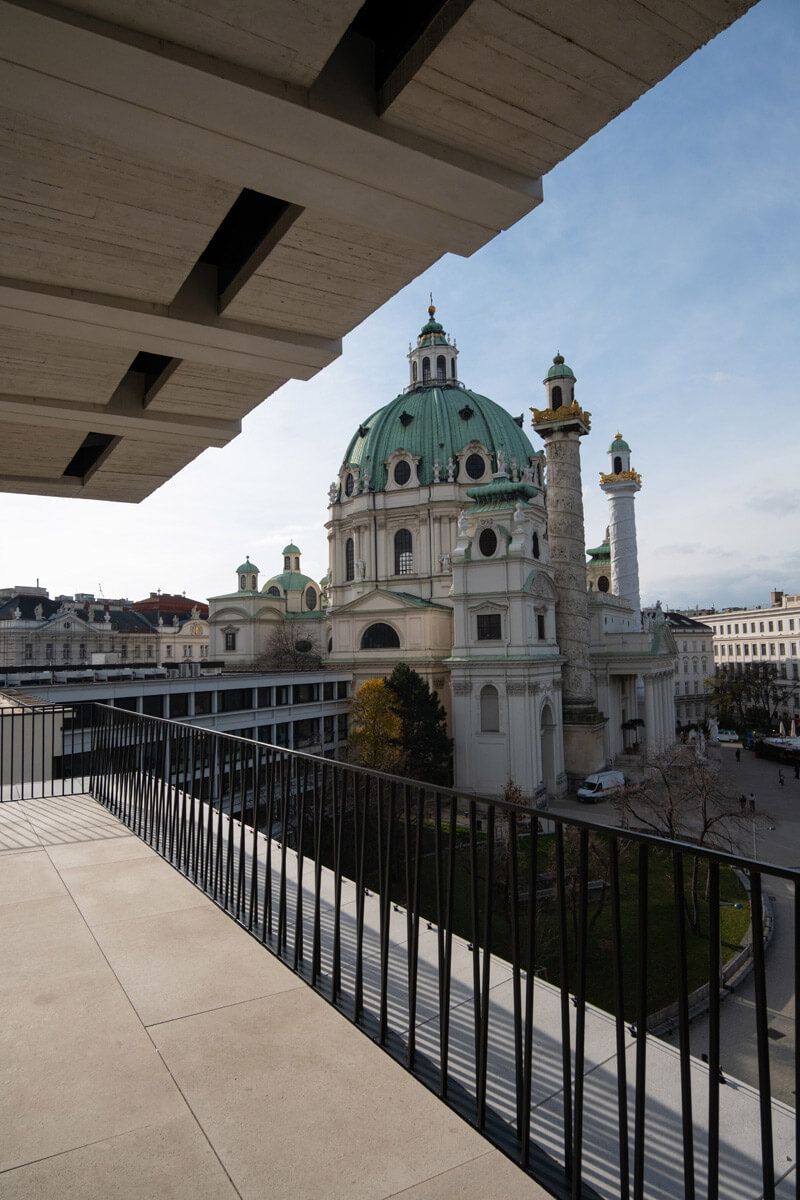 Direkt nebenan liegt das Wien Museum von dessen Terrasse man auch einen fantastischen Ausblick auf die Kirche hat.
