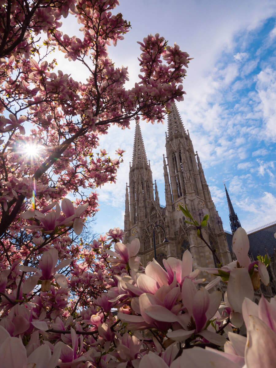 Kirchen gibt es in Österreich viele, aber eine, die man in Wien unbedingt besuchen sollte, ist die neogotische Votivkirche. Im Frühjahr blüht es im Park hier wunderschön, zudem werden in der Votivkirche immer wieder spezielle Events angeboten, vor allem das „Lights of creation“ ist wirklich fantastisch.